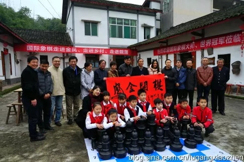 国象普及,叶江川和谢军、徐俊、李祖年、诸宸等前往金凤镇送棋下乡村、进社区,手把手